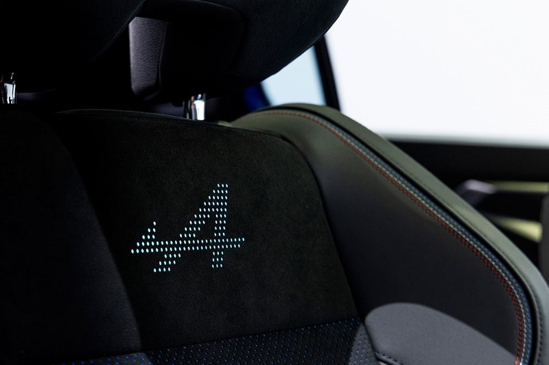 Sjedala od Alcantare u inačici Renault Rafale Esprit Alpine perforirana su te se kroz njih nazire plava obloga od tkanine s moare efektom. On je vidljiv i na masci hladnjaka. Logotip u obliku slova A i strelice na gornjem dijelu naslona svijetli i treperi u skladu s otkucajima srca, simbolizirajući val uzbuđenja koji vas preplavi kad se približite automobilu. Boja svjetla prilagođava se boji koju odaberete u postavkama sustava Multi-Sense. Budući da su svjetla ugrađena u fleksibilnu tkaninu, nasloni sjedala nisu nimalo kruti. Ovo je prvi put da se takva tehnologija upotrebljava u vozilu. Unutrašnjost inačice Esprit Alpine prošivena je crvenim, bijelim i plavim šavovima. To je omogućio posebno osmišljen stroj s tri glave koji omogućuje istovremeno šivanje triju niti.